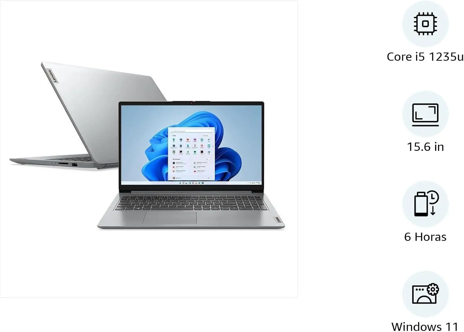 Se você busca um notebook leve, confiável e eficiente para trabalho, estudos ou uso cotidiano, o Lenovo IdeaPad 1i com processador Intel Core i5 de 12ª geração pode ser exatamente o que você precisa. Ele combina desempenho sólido, bateria duradoura e um design moderno para quem quer produtividade e mobilidade no mesmo pacote.