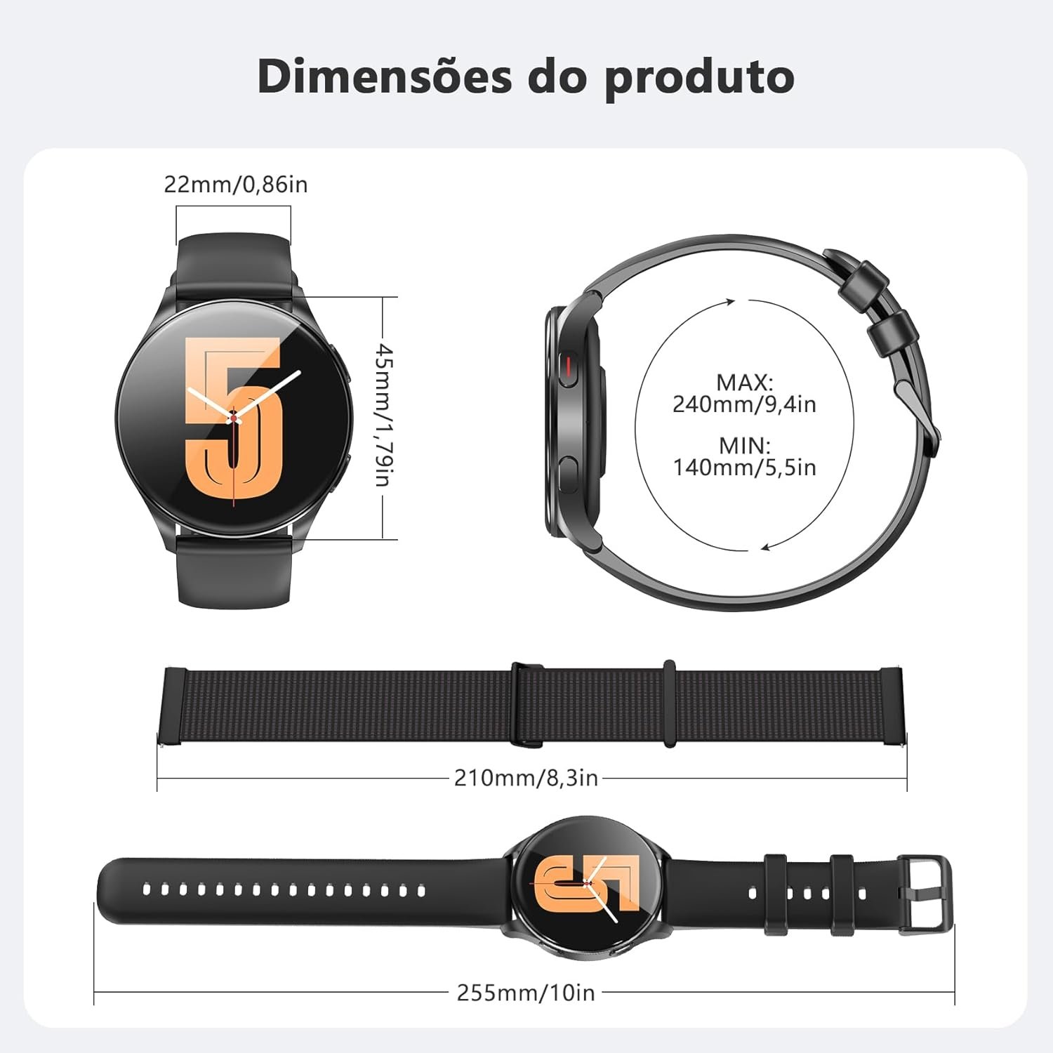 Você que está procurando um relógio prático para o seu dia a dia e treinos, o IOWODO W40 combina uma tela nítida, c chamadas no pulso e boa autonomia. A tela AMOLED 1.43” é o ponto-chave aqui, porque a qualidade do painel melhora a visualização e leitura de notificações e dos paineis do relógio. Além disso, esse modelo traz duas pulseiras (nylon e silicone), proteção IP68 e Bluetooth 5.3, mantendo um visual versátil e unissex. Na rotina, ele ajuda a atender ligações, controlar música e registrar suas atividades sem tirar o celular do bolso.